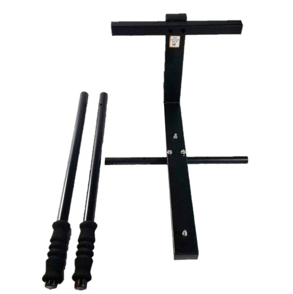 Measures 46'' across the whole bar when assembled. If you need a shorter bar because your door width is small, please e-mail us and we can cut the bars shorter!